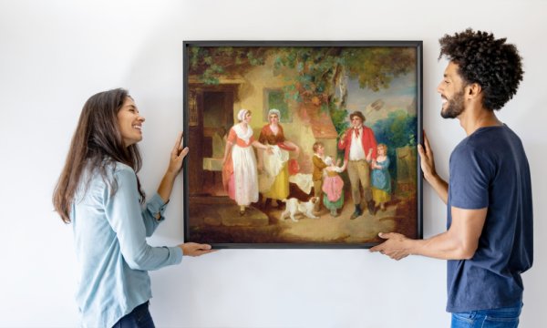 In Ireland, however, Wheatley quickly made a name for himself as a portraitist and created one of his most famous works, the Irish House of Commons. The picture shows a detailed and vivid depiction of the members of the Irish Parliament in 1780. Otherwise, the portrait artist's clientele consists of successful middle-class merchants and bankers who like to be portrayed as country noblemen. Wheatley also works a lot in nature and outdoors, where he finds his motifs in the rural and poor population of Ireland outside Dublin. He collected a lot of inspiration, which he later used in London in his historical and rural art prints. During his travels across the island of Ireland he produced drawings, watercolours and oil paintings of important mansions and estates in Ireland.