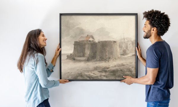 | Gray wash, pen, in gray ink, brown ink, black ink, graphite, gouache and scratching out on moderately thick, moderately textured, cream, laid paper, mounted on, moderately thick, moderatelyh textured, gray, wove paper