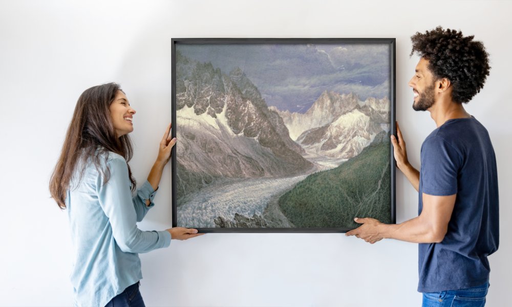 Personalizing your art print at Meisterdrucke is a simple and intuitive process that allows you to design an artwork exactly to your specifications: Choose a frame, determine the image size, decide on a printing medium, and add suitable glazing or a stretcher frame. We also offer customization options such as mats, fillets, and spacers. Our customer service is available to help you design your perfect artwork.