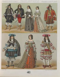Costumes of the Nobility in France in the 18th Century. Illustration in 'Le costume historique' by Racinet(Costumes of the nobility in France in the 18th century. Illustration in “” Le costume historique”” by Racinet)Albert Charles August Racinet |
