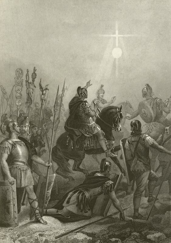 history · 4th century · roman empire · emperor · constantine the great · army · soldiers · battle of milvian bridge · italy · vision · conversion · cross · religion · christianity · inspiration · Private Collection / Bridgeman Images · / Look and Learn |