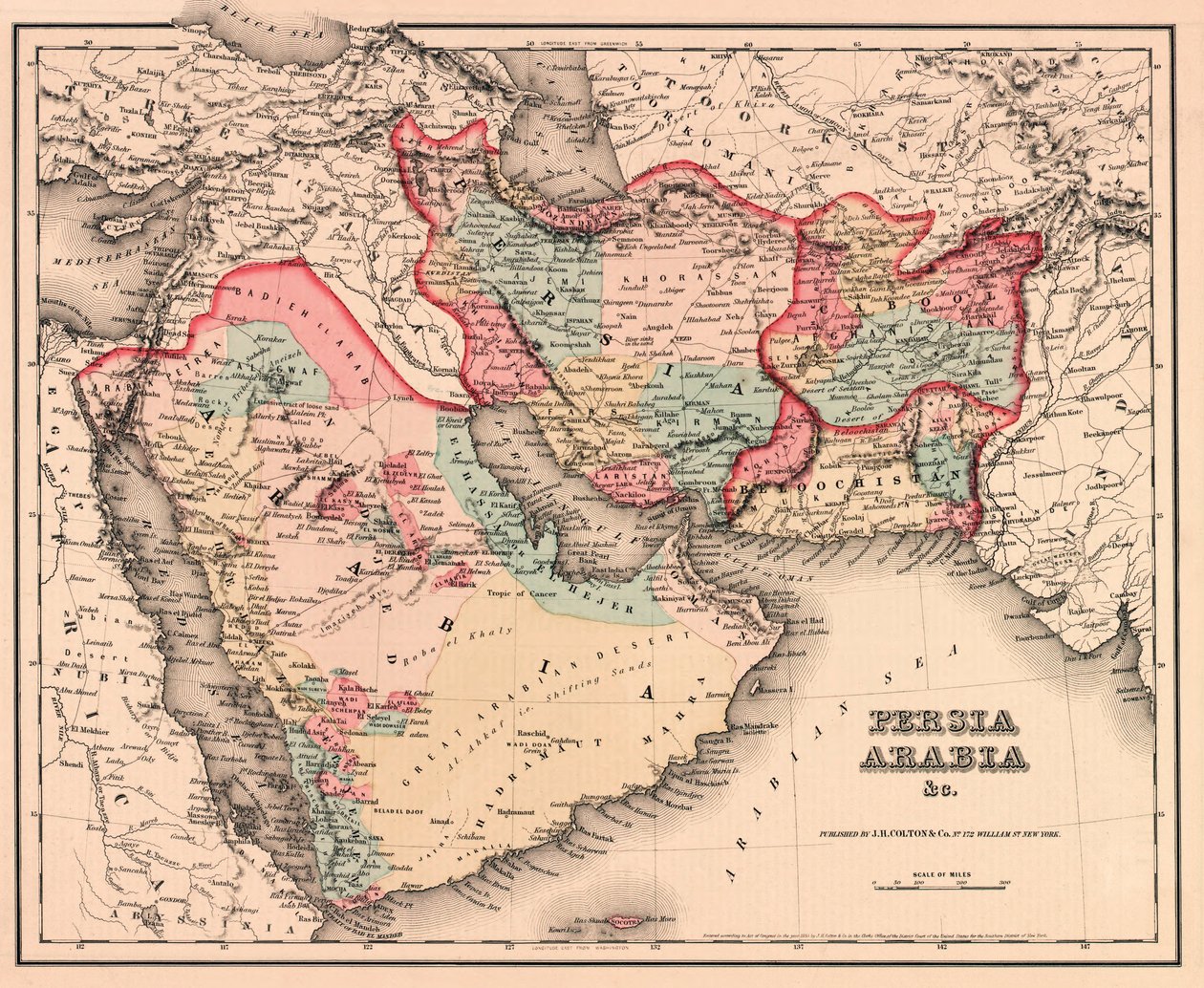middle east · coltons general atlas · maps · geography · cartography · atlas · atlases · persia · iran · arabia · persian gulf · Red Sea · Private Collection / Bridgeman Images |
