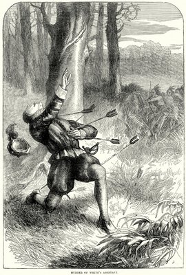 Murder of White's Assistant, Illustration from Cassell's History of the United States, Pub. by Petter & Galpin c.1890(Murder of White"s assistant, illustration from Cassell"s History of the United States pub. by Petter & Galpin c.1890)American School |