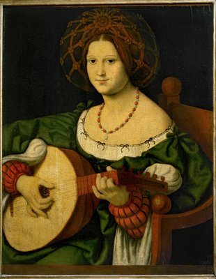 16th century · 16 century · xvi century · xvith century · sixteenth century · c16th · 16 16th xvi xvith century · sec xvi · late 16th century · early 16th century · woman · feminine · ladies · women · lady · w0men · the woman · masculine · gents · only men · youth · younghood · young · portrait · portait · portriat · portrait, · chair · 16th century style · neckline · looking at camera · musician · necklace · 16th century painting · grace · musical instrument · black background · historical clothing · headwear · fine art painting · italy · instruments stringed · vertical · music · 16th century · beautiful people · playing · skill · portrait · sitting · dress · musical instruments · waist up · jewels · serene people · one young woman only · lute · europe · holding · elegance · one person · illustration and painting · painting · solario andrea · rome galleria nazionale d'arte antica di palazzo barberini ( national art gallery barberini palace) · / Bridgeman Images