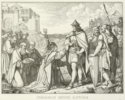 19th century · germany · europe · christianity · religion · bishop · priest · engraving · italy · middle ages · ravenna · emilia romagna · king · royalty · black and white · city · mzengraving · 5th century · / Bridgeman Images
