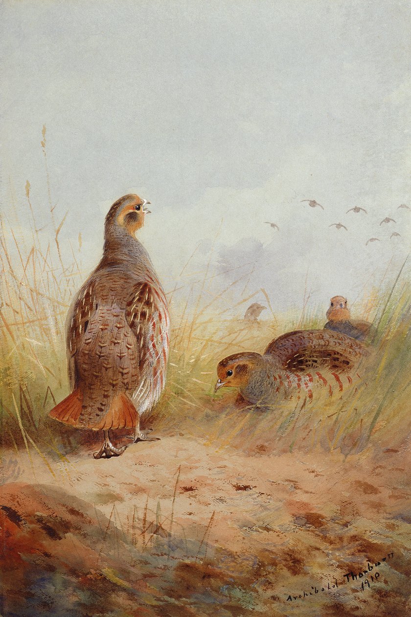 Three English Partridges, 1910(Three English Partidges, 1910 (wc und gouache on paper))Archibald Thorburn |