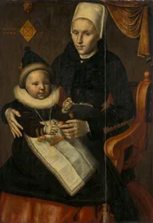 Mother and Child in North Holland Costume(Moeder en kind in Noord-Hollandse dracht. oil on panelmedium QS)Attributed to Jan Claesz. |