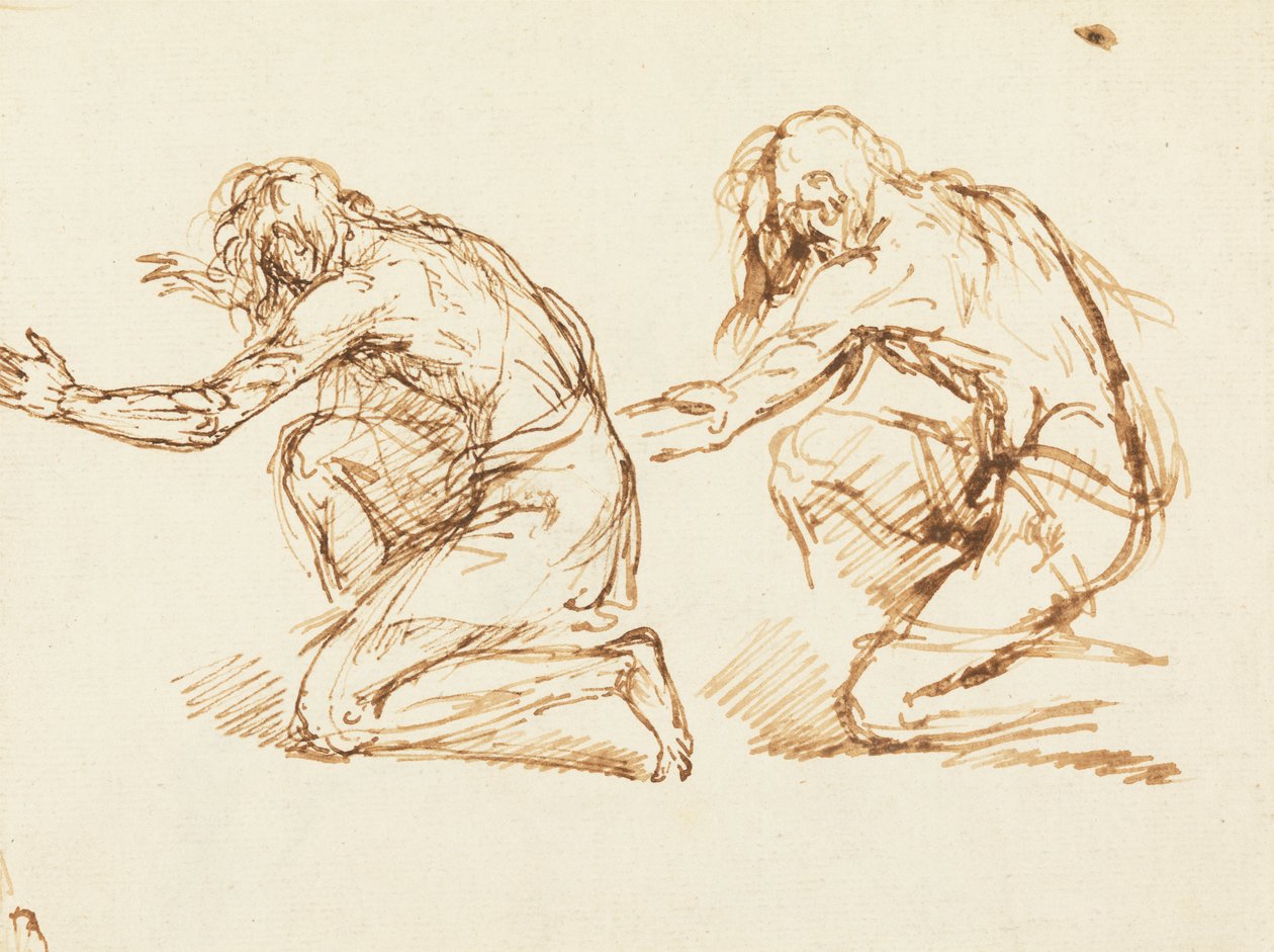 Undated · Pen and brown ink, verso: graphite on medium, slightly textured, blued white laid paper
