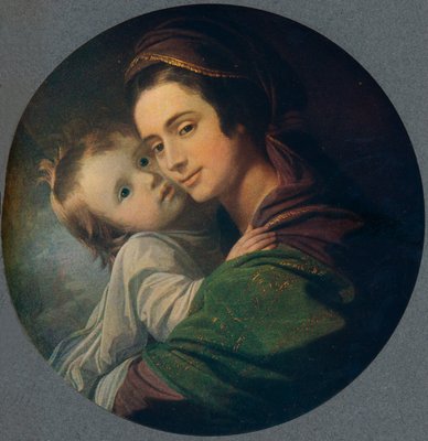 mother · headband · child · woman · oval · framed · green · working · nightgown · dress · artists · wife · elizabeth · their · raphael