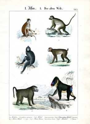 19th century · germany · europe · animal · colour · natural history · many animals · monkey · zoology · lithograph · print · mzengraving · zoological plate · / Bridgeman Images