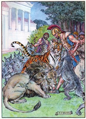 20th century · happiness · feeling · colour · greece · europe · garden · legend · lion · animal · tawny · mythology · wild · surprise · lithograph · print · mzprint · / Bridgeman Images