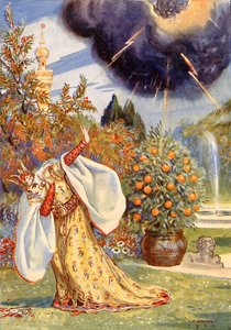 20th century · colour · lightning · weather · legend · mythology · cloud · romania · europe · lithograph · print · story · mzprint · / Bridgeman Images