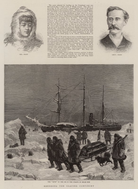 rounding · glacial continent · mrs peary · lieutenant peary · kite · straits of belle isle · Peary Expedition · Private Collection / Bridgeman Images · / Look and Learn |