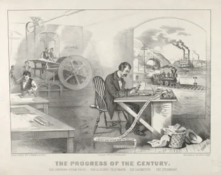 The Progress of the Century: The Lightning Steam Press, The Electric Telegraph, The Locomotive, The SteamboatCurrier and Ives |
