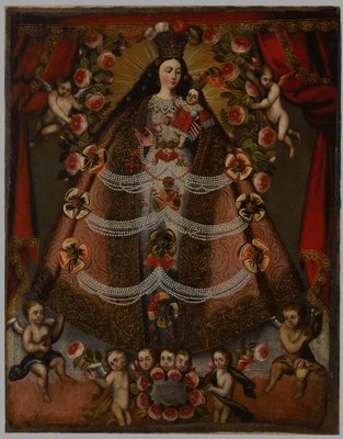christian · virgin and child · c17th · crown · flowers · peruvian · virgin mary · roses · christianity · cuzco · madonna · putti · peru · halo · Brooklyn Museum of Art, New York, USA / Bridgeman Images