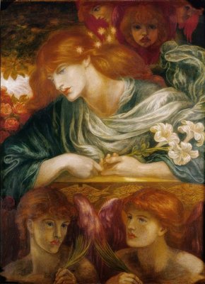 allegory · angels · english · woman · female image · virginity · lily · melancholy · portrait · pre-raphaelites · hair · beauty · sensuality · symbolism · innocence · victorian · people · damozel · technology · painting · painting · Blessed · Damozel · Port Sunlight, Lady Lever Art Gallery / akg-images