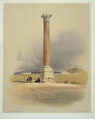 Pompey's Pillar, Alexandria(Pompey's Pillar, Alexandria: Red granite column erected to Diocletian, 4th century, once thought to mark burial place of Pompey the Great. By David Roberts (1796-1864) Scottish artist and orientalist)David Roberts |