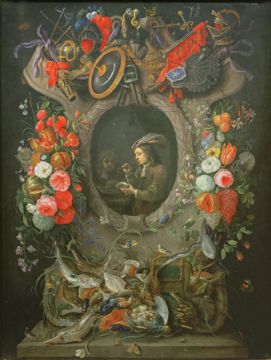 still life · fish · frame · flowers · cartouche · armour · blowing · souffler · bulles · Louvre, Paris, France / Bridgeman Images |