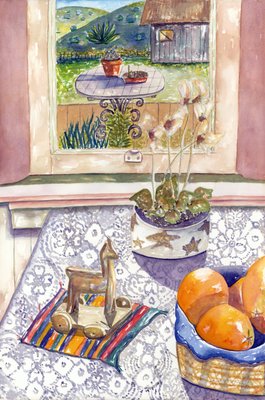 1990s · 20th century · contemporary art · colour · window · nature · still life · orange (colour) · orange (fruit) · citrus · fruit · food · landscape · painting · nobody · table · furniture · interiordesignok · balstudio · contemporary artist · · / Bridgeman Images