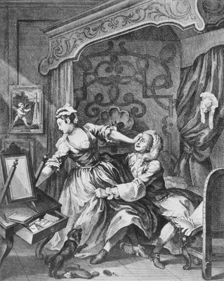 animal · female · women · woman · people · male · interior · dogs · british · museum · room · aggression · humour · funny · century · judge · britain · inside · enforcement · concept · distressed · harassment · sexual harassment · metaphor · before · the met · metropolitan museum of art · the metropolitan museum of art · 19th century · indoors · black white · black and white · 18th century · eighteenth century · nineteenth century · bedchamber · brush-off · lord chief justice · lustfulness · one in the eye · seizing an opportunity · william hogarth · bedroom · caricature · satire · engraving · dent · hogarth · william · w hogarth · bed chamber · heritage art · Heritage Art/Heritage Images