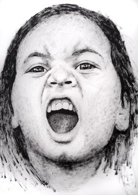 contemporary art · drawing · childhood · child · girl · scream · portrait · face · black and white · 2000s · 21st century · mzdrawing · contemporary artist · · Private Collection / Bridgeman Images