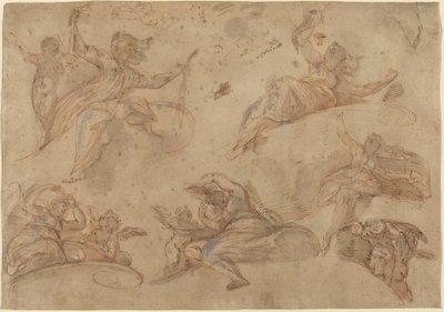 Allegorical Figures Seen from Below(Allegorical Figures Seen from Below (pen and brown ink with red wash, heightened with white, over red chalk))Domenico Maria Canuti |