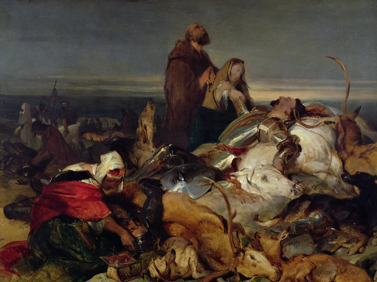 scottish · slaughter · death · dying · dead · soldier · mourning · mourner · grief · grieving · sorrow · sorrowful · armour · horse · fallen · deer · battle scene · buck · stag · victorian · sentimental · Sheffield Galleries and Museums Trust, UK / Bridgeman Images |