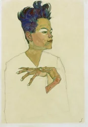 painting · austria · art nouveau · modern style · portrait · egon schiele · jugendstil · modernisme · stile liberty · reformstil · wiener secession · stil modern · fin de siècle · schiele · watercolour · white colour · black chalk on paper · schiele · egon 1890?1918 · Fine Art Images/Heritage Images