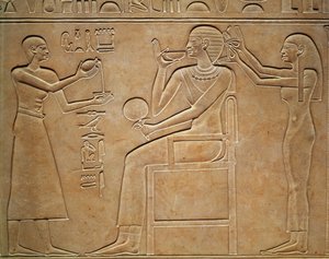 Relief on a shrine erected by Pharaoh Taharqa in the court of the Temple of Amun built by him at Kawa in Nubia, 25th Dynasty, Late Period, 690-64 BC sandstone (detail)(Relief on a shrine erected by Pharaoh Taharqa in the court of the Temple of Amun built by him at Kawa in Nubia, 25th Dynasty, Late Period, 690-64 BC sandstone detail of 107896)Egyptian 25th Dynasty |