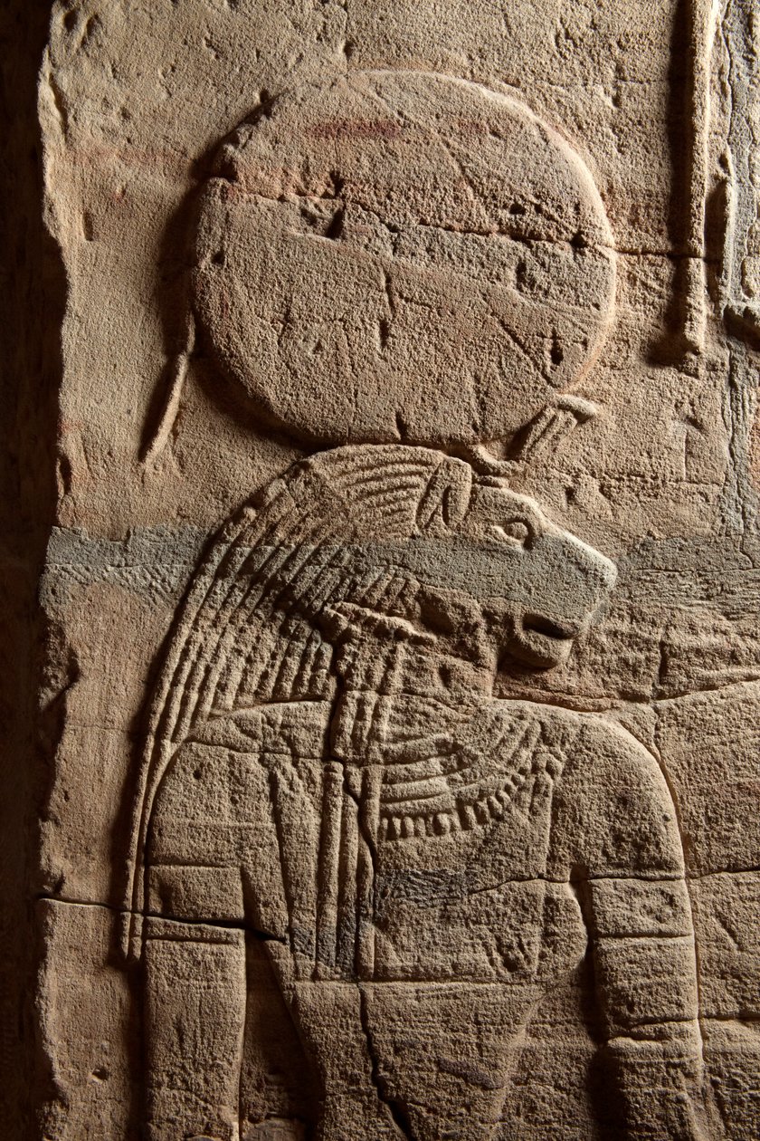 Relief on a shrine erected by Pharaoh Taharqa in the court of the Temple of Amun built by him at Kawa in Nubia, 25th Dynasty, Late Period, 690-64 BC sandstone (detail)(Relief on a shrine erected by Pharaoh Taharqa in the court of the Temple of Amun built by him at Kawa in Nubia, 25th Dynasty, Late Period, 690-64 BC sandstone detail of 107896)Egyptian 25th Dynasty |