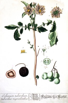 Potato Plant and Fruit, Plate from 'Herbarium Blackwellianum'(Potato plant and fruit, plate from 'Herbarium Blackwellianum', published 1757 in Nuremberg, Germany (colour engraving))Elizabeth Blackwell |