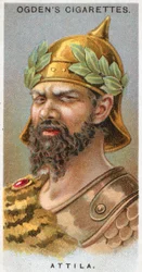 (Portrait of Attila the Hun (c.406-453) - From series “” Leaders of Men”” - Chromolithography - English School, 20th century -)