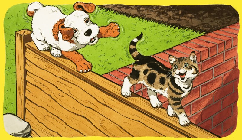paddy paws · puppy · kitten · following · fun · danger · Private Collection / Bridgeman Images · / Look and Learn |