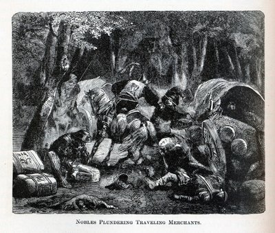 Nobles Plundering Traveling Merchants(Nobles Plundering Traveling Merchants (engraving))English School |