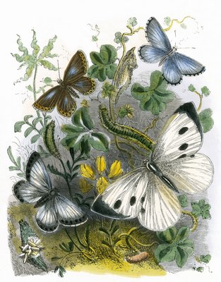 the butterfly vivarium · butterflies · caterpillars · insects · nature · flowers · entomology · water · pupa · chrysalis · wings · lepidoptera · sphinx ligustri · moths · beetles · eggs · metamophorses · Private Collection / Bridgeman Images · / Look and Learn