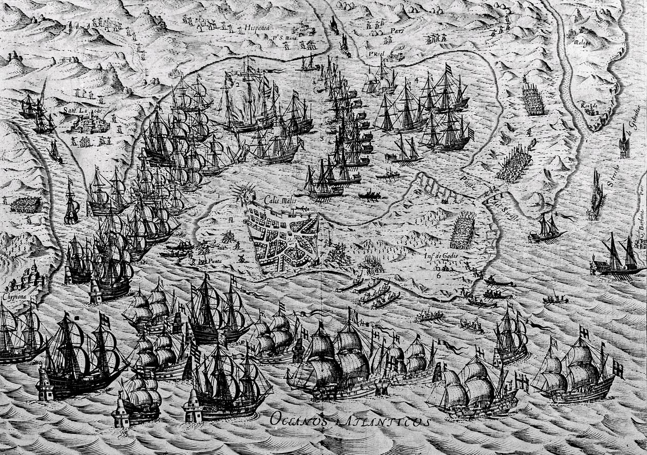 battle of cadiz · english · dutch · spanish · fleet · fleets · port · elizabethan · chart · mapping · cartography · attacking · ships · andalucia · andalusia · spain · anglo-dutch · invading · harbour · royal navy · naval · sea battle · formation · Renaissance · Private Collection / Bridgeman Images