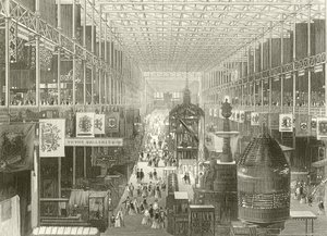 Interior of The Great Industrial Exhibition of 1851 in Hyde Park from Cyclopaedia of Useful Arts & Manufactures, edited by Charles Tomlinson, c.1880s(Interior of The Great Industrial Exhibition of 1851 in Hyde Park from Cyclopaedia of Useful Arts & Manufactures, edited by Charles Tomlinson, c.1880s )English School |
