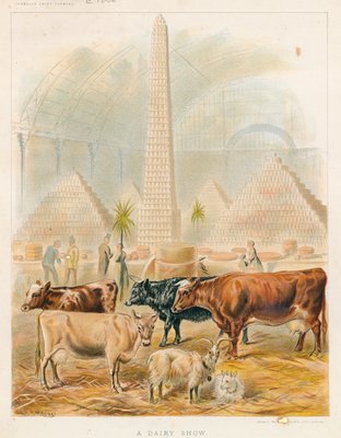 dairy · show · cows · cattle · animals · exhibition · entertainment · pyramid · monument · Private Collection / Bridgeman Images · / Look and Learn