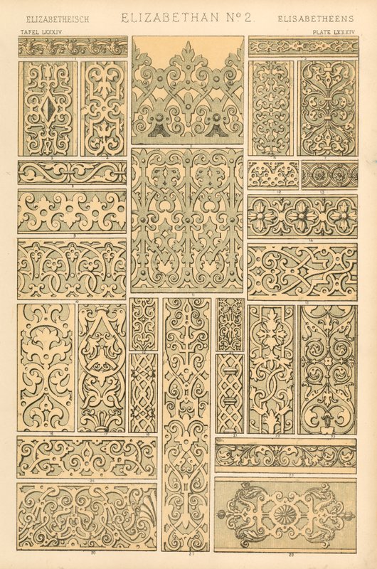 ornament · ornamentation · design · pattern · historical · plates · elizabethan · time · queen elizabeth i · english · Private Collection / Bridgeman Images · / Look and Learn
