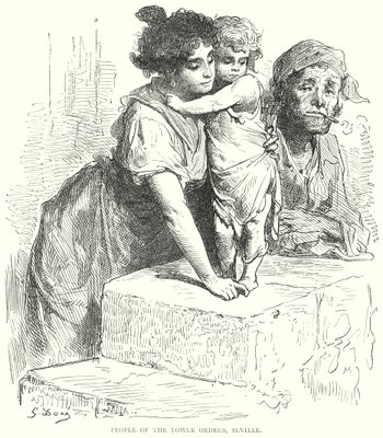 inhabitants · faubourg of marcena · seville · spain · mother · father · family · Private Collection / Bridgeman Images · / Look and Learn