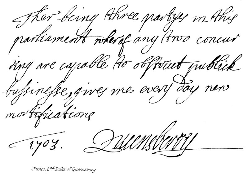 autograph · holograph · handwriting · writing · example · james · 2nd duke of queensbury · queensberry · queensbery · Private Collection / Bridgeman Images · / Look and Learn |
