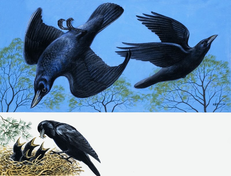 birds · blackbirds · animals · nature · chicks · Private Collection / Bridgeman Images · / Look and Learn |