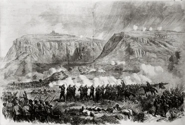 The Abyssinian Expedition: The Battle at Arogee, before Magdala, on Good Friday, April 10, published in 'The Illustrated London News'(The Abyssinian Expedition: The Battle at Arogee, before Magdala, on Good Friday, April 10, published in 'The Illustrated London News'. 1868 )English School |