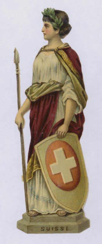 victorian · scrap · 19th century · country · countries · nationality · identity · national · emblems · symbols · icons · switzerland · swiss · red cross · Private Collection / Bridgeman Images · / Look and Learn |