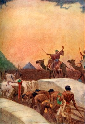 transport · transportation · animal · building · people · male · animals · teamwork · arts · country · desert · egypt · construction · book · geography · color · egyptian · pyramid · camel · camels · hauling · block · location · century · effort · sledge · literature · concept · legend · myth · sled · slavery · oxen · slave · road transport · colour · legendary · ancient egyptian · 1910s · 20th century · ancient egypt · forced labour · geographical feature · portrait · spence · lewis · g g harrap co · harrap · gg harrap co · evelyn paul · lewis spence · james lewis thomas chalmbers spence · paul · evelyn · george g harrap co · mizraim · g g co · gg co · george g harrap company · george harrap company · myths of ancient egypt · evelyn maude blanche paul · The Print Collector/Heritage Images