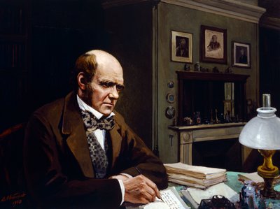 Charles Darwin, British naturalist and evolutionary scientist, working in his study room(Charles Darwin, British naturalist and evolutionary scientist, working in his study room (painting on canvas))Evstafieff Evstafieff |