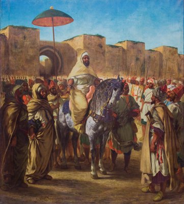 Moulay Abd-er-Rahman, Sultan of Morocco, Leaving His Palace in Meknes Surrounded by His Guard and Principal Officers, 1845(Moulay Abd-er-Rahman,sultan of Morocco,leaving his palace in Meknes surrounded by his guard and his principal officers,1845 (oil on canvas))Ferdinand Victor Eugene Delacroix |