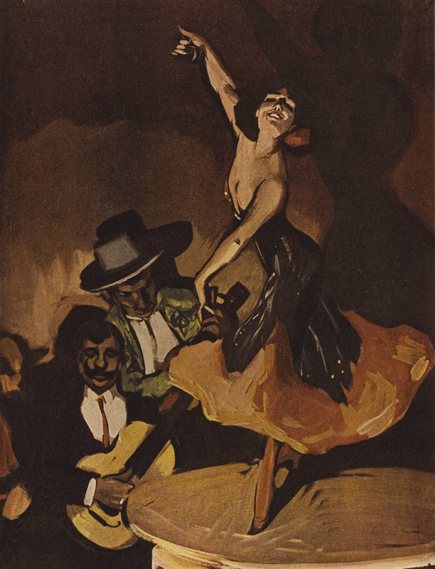 dance · dancing · dancer · dancers · fandango · spain · spanish · table · guitar · Private Collection / Bridgeman Images · / Look and Learn |