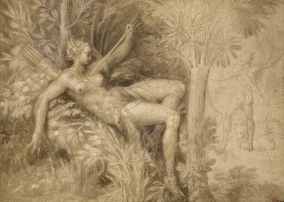 nude · plants · breasts · outline · sketch · black · white · beige · leaves · trees · procris · cephalus