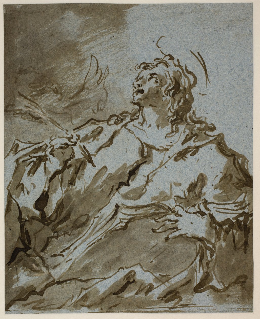 Undated · Pen, brown ink and brown wash on blue paper